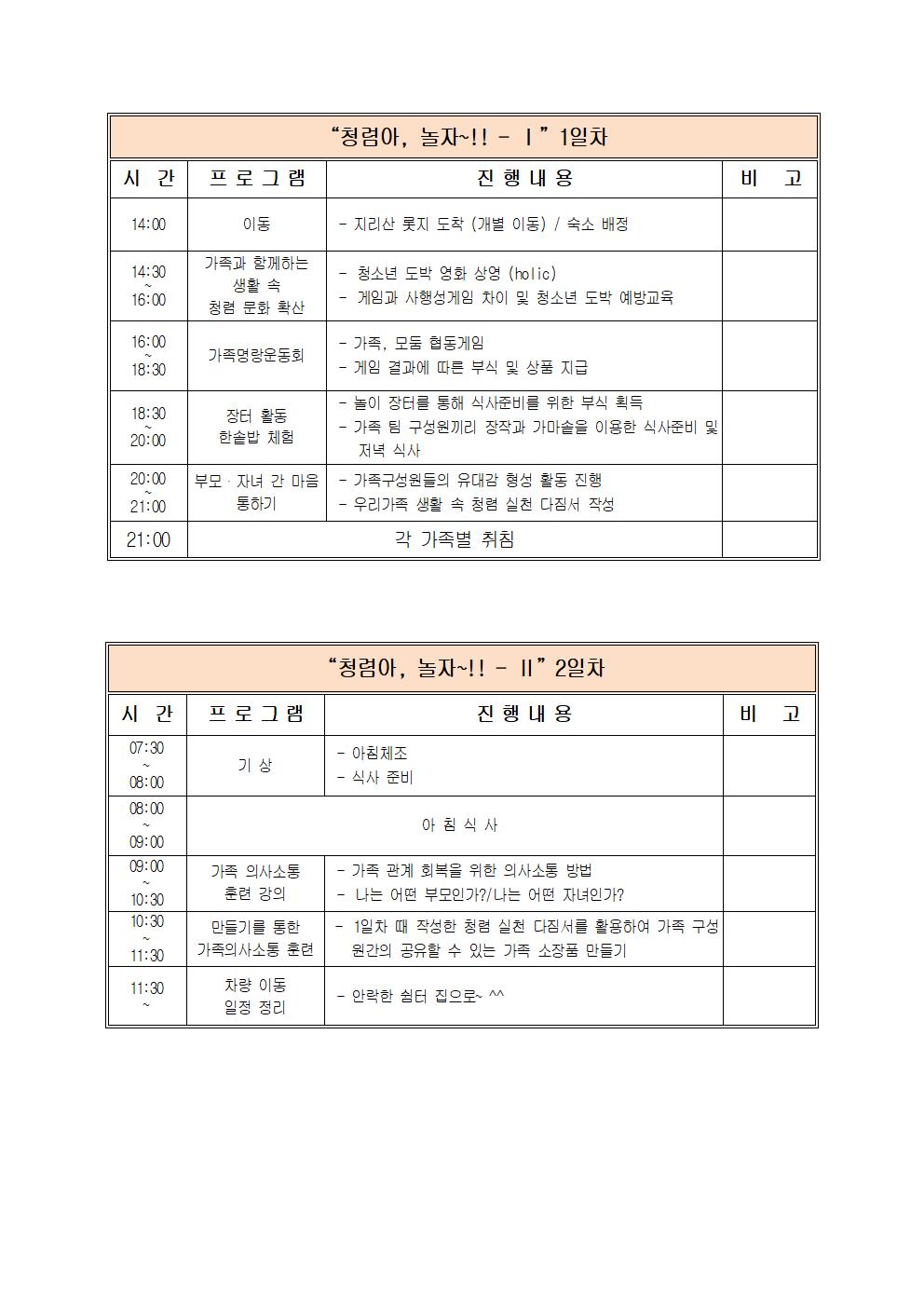 < 가족캠프 세부일정 >