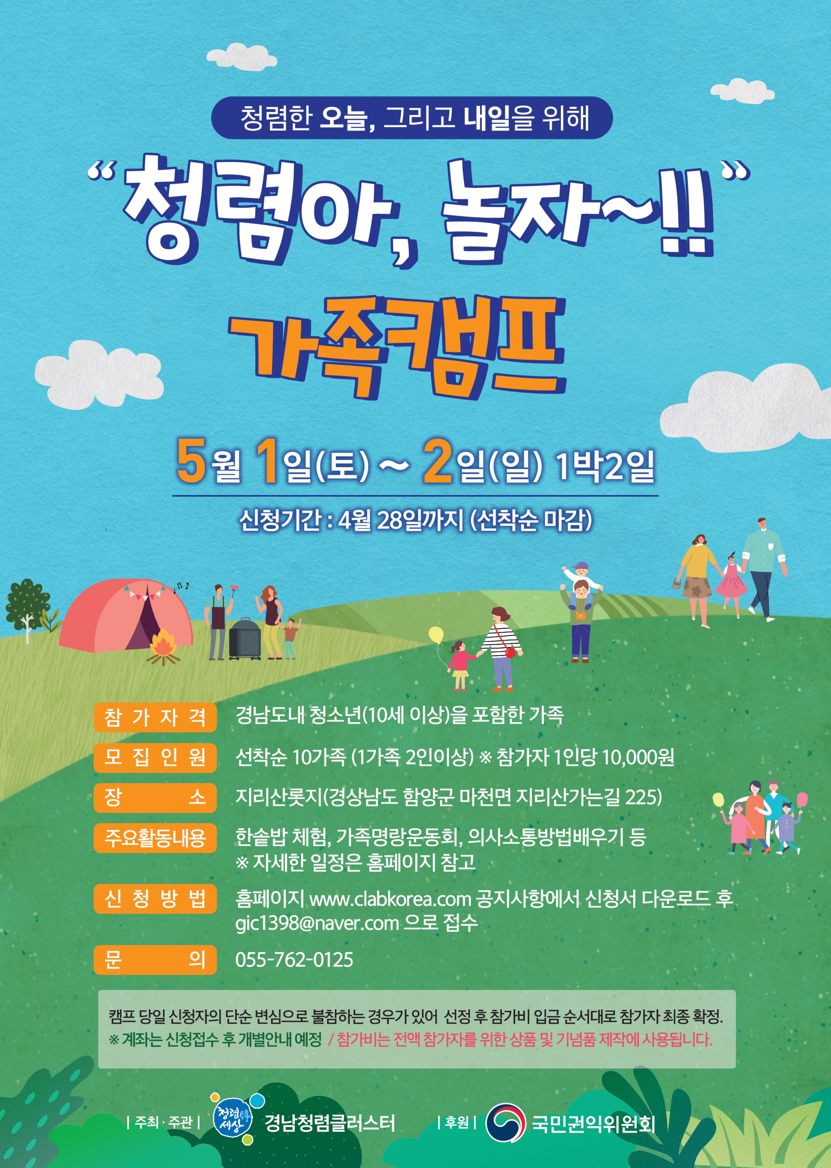 [열일곱번째소식] 청렴한 오늘, 그리고 내일을 위해 "청렴아, 놀자~!!" 가족캠프 안내 / 접수마감