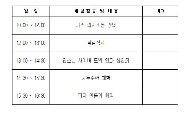 º 대상 : 경남도내 청소년(10세이상)을 포함한 가족 ※ 1인 참가비 5,000원