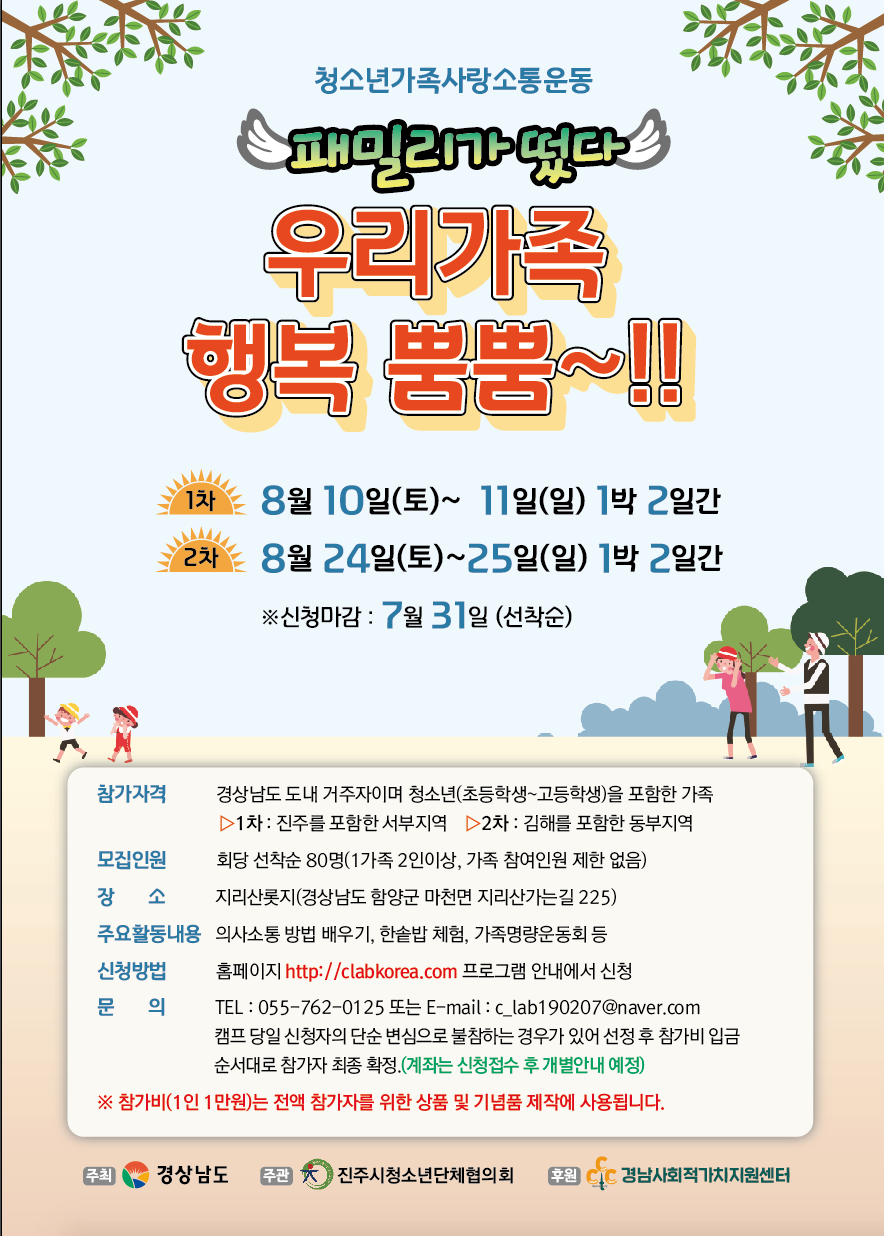 패밀리가 떴다 우리가족 행복 뿜뿜~!! 가족캠프 참가자 모집!