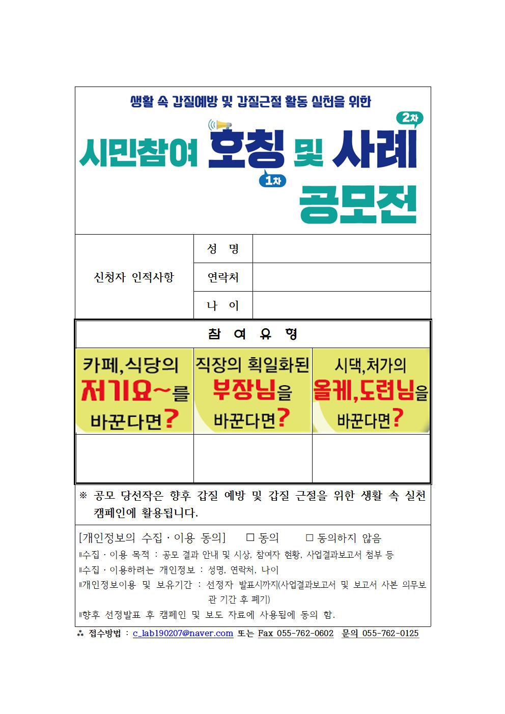 포스터의 '저기요!~' , '부장님', '올케, 도련님' 등은 제안 받을 호칭을 위해 예시를 든것입니다.